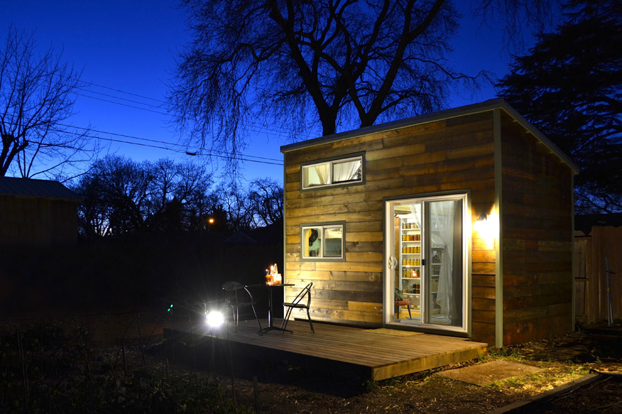 ตัวบ้านมีขนาดเพียง 11 ตร.ม. ถือว่าเล็กเป็นครึ่งหนึ่งของห้องพักในหอพักเมืองไทยหลายๆห้องเลยล่ะ แต่ก็ยังสามารถทำให้กลายเป็นบ้านได้อย่างดี รูปทรงกล่องสี่เหลี่ยมหลังคาลาดเอียง มีระเบียงไม้ด้านหน้า ภายนอกตกแต่งด้วยไม้ทั้งหมด