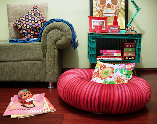 สุดท้ายคือเก็บตรงจุกลม โดยการนำผ้าที่เหลือมามัดจากฐานจุกลมให้แน่น แล้วพันขึ้นไปโดยรอบ ก่อนจะผูกปมแล้วตัดปลายผ้าทิ้ง เราก็ได้ที่นั่งเก๋ๆมาใช้งานและตกแต่งบ้านแล้วล่ะ ใครมีเวลาว่าง ลองทำกันดูนะครับ ^^