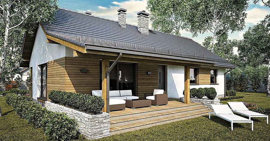 บ้านหลังนี้เป็นบ้านดีไซน์หน้ากว้าง ออกแบบในรูปทรงร่วมสมัย ประกอบไปด้วยหลังคาทรงจั่ว ปูด้วยกระเบื้องสีเทาตัดกับผนังภายนอกบ้านสีขาว ซึ่งกรุด้วยไม้เป็นดีเทลเพิ่มความสวยงาม เป็นธรรมชาติให้แก่บ้านหลังนี้
