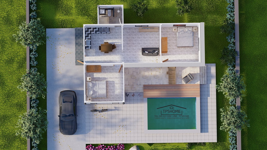 กลับมาพบกันคราวนี้ ในบ้าน ขอพาเพื่อนๆ ชาวเว็บไปชม แบบบ้านโมเดิร์นชั้นเดียว ผลงานการออกแบบโดย TP5Home รับออกแบบบ้าน แบบขออนุญาตก่อสร้าง เป็นแบบบ้านที่เรียบง่าย เหมาะสำหรับการพักผ่อน ตามมาชมรายละเอียดกันเลยจ้า