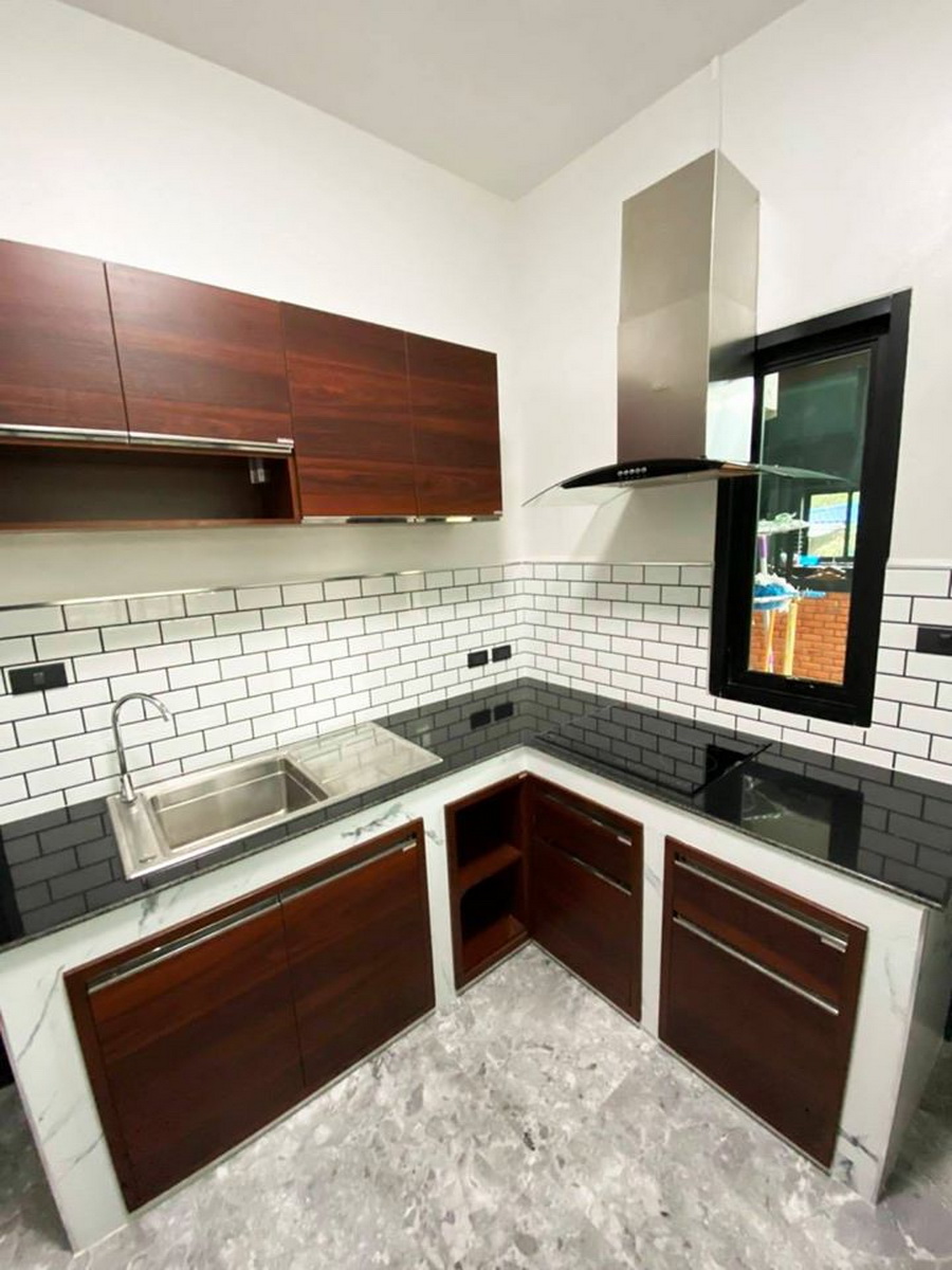 ในส่วนของห้องครัวเป้นห้องที่มีขนาดพอเหมาะ สามารถถ่ายเทอากาศได้ดี พร้อมกับมีสิ่งอำนวยความสะดวกในแบบโมเดิร์นที่ครบทุกการใช้งาน