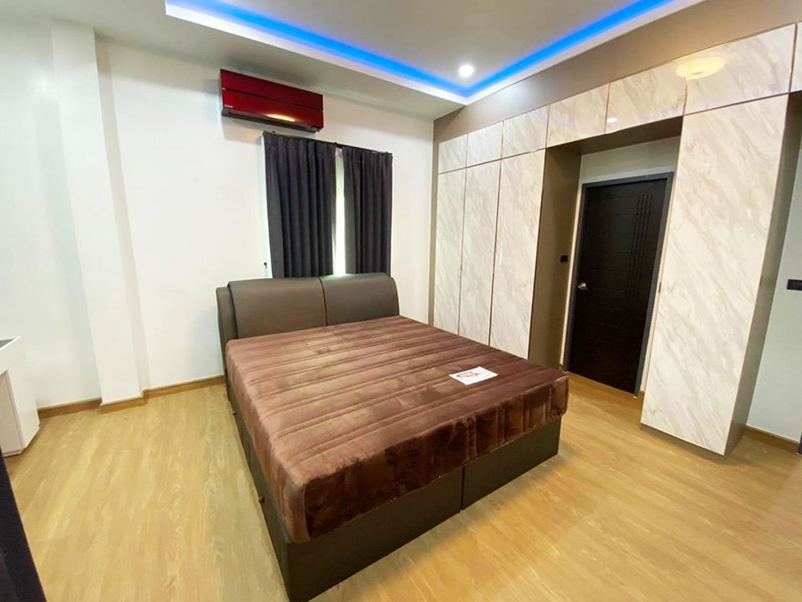 ทางด้านห้องนอน เป็นห้องที่มีพื้นที่ภายในกว้างขวาง ตกแต่งในบรรยากาศที่อบอุ่นสบายตา เหมาะกับการพักผ่อน ทั้งยังสามารถจัดวางเฟอร์นิเจอร์ได้หลายชิ้นตามต้องการอีกด้วย