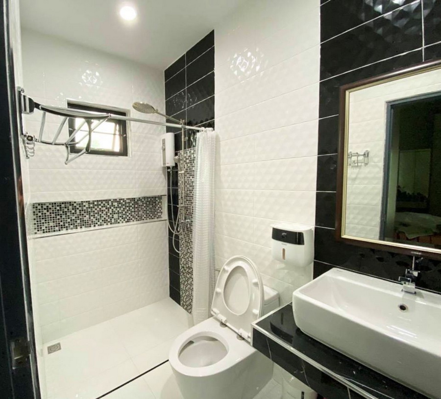 ทางด้านห้องน้ำเป็นห้องที่มีพื้นที่กว้างขวางพอสมควร ภายในจึงสามารถแบ่งพื้นที่การใช้งานได้อย่างเป็นสัดส่วน พร้อมกับมีสิ่งอำนวยความสะดวกที่ครบทุกฟังก์ชันการใช้งาน