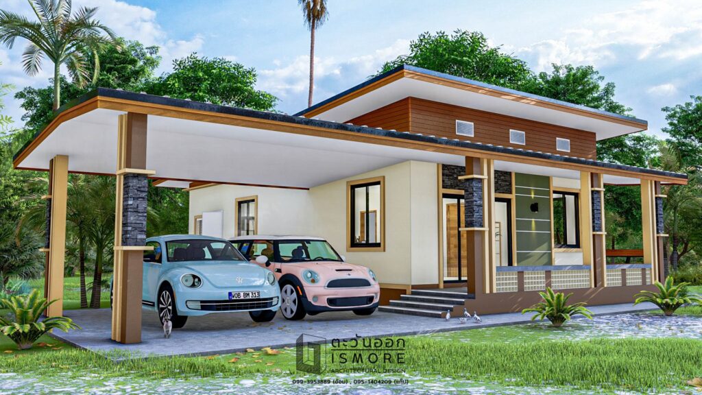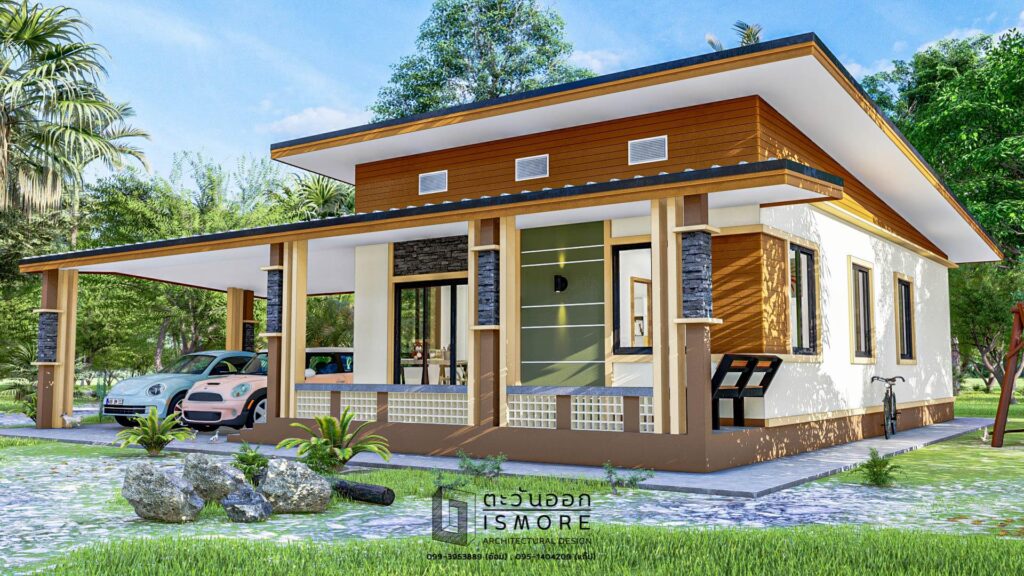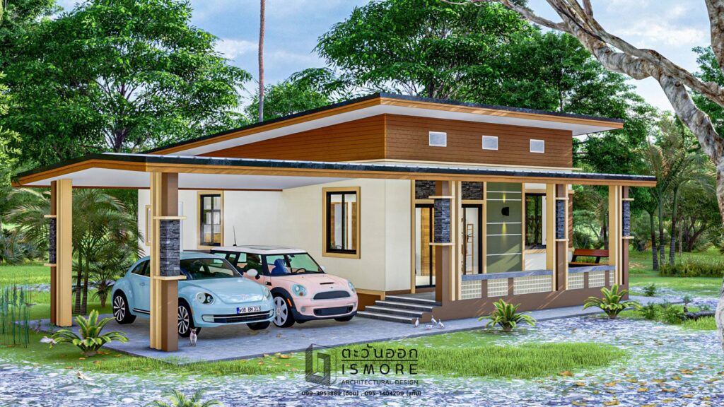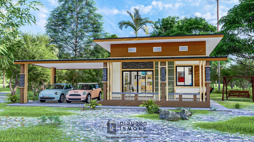 แบบบ้านหลังนี้ประกอบไปด้วย 3 ห้องนอน 1 ห้องน้ำ 1 ห้องครัว 1 ห้องรับแขก 1 ระเบียงนั่งเล่น พร้อมที่จอดรถ 2 คัน บนพื้นที่ใช้สอยทั้งหมด 126.33 ตารางเมตร (กว้าง 7 เมตร ลึก 13.60 เมตร) หากเพื่อน ๆ ชาวเว็บต้องการทราบข้อมูลเพิ่มเติมเกี่ยวกับแบบบ้านนี้ สามารถสอบถามผู้ออกแบบโดยตรงผ่านช่องทางติดต่อด้านล่างนี้เลยนะครับ
