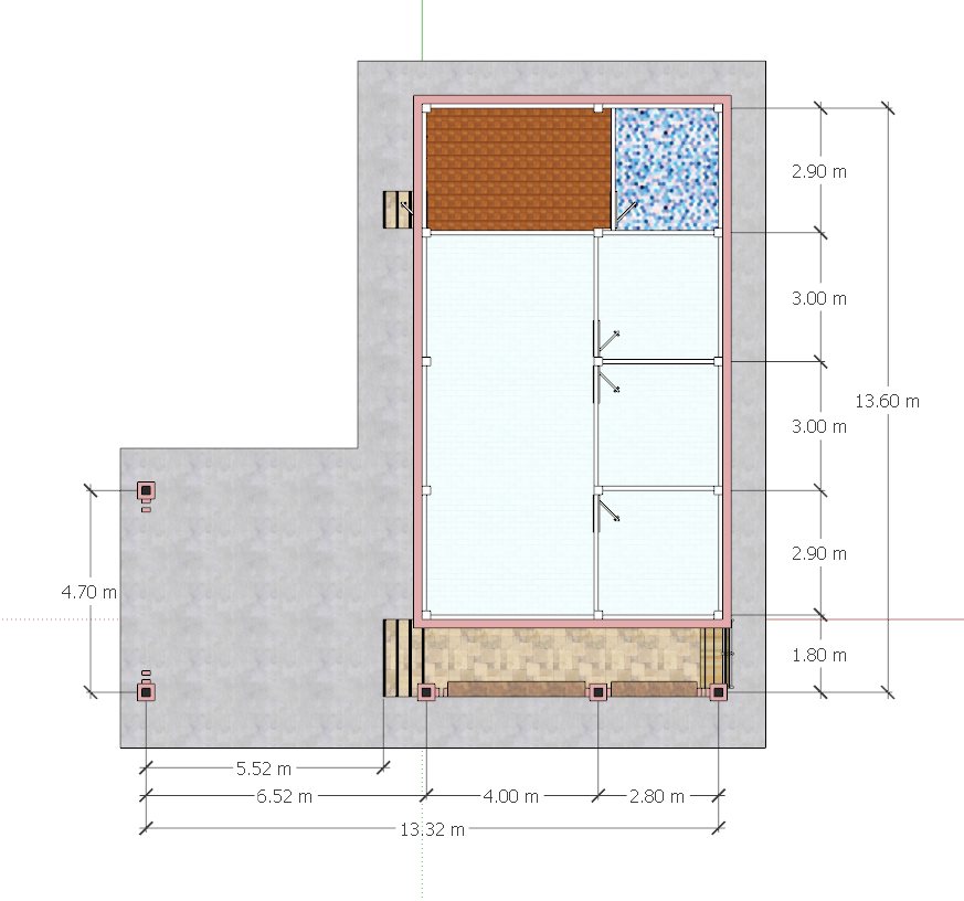จะเห็นได้ว่าแบบบ้านทรงหน้าแคบหลังลึกนี้มีการออกแบบที่เรียบง่ายไม่ซับซ้อน โดยภายในบ้านนั้นจะแบ่งฝั่งซ้ายมือออกเป็นห้องนั่งเล่น/ห้องโถง ในขณะที่ด้านขวามือจะเป็นห้องนอนทั้งหมด ส่วนหลังบ้านมีห้องครัวและห้องน้ำ