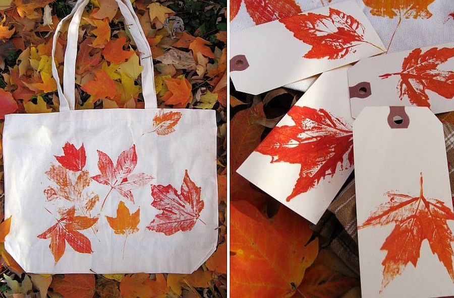 7. กระเป๋าและของแต่งบ้านพิมพ์ลายใบเมเปิ้ลสีน้ำตาลแดง