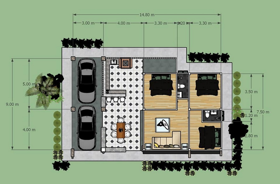 แบบบ้านสไตล์โมเดิร์นหลังนี้ประกอบไปด้วย 3 ห้องนอน 2 ห้องน้ำ 1 ห้องโถงนั่งเล่น 1 ห้องครัวและพื้นที่รับประทานอาหารแยกจากตัวบ้าน พร้อมกับทีี่จอดรถ 2 คัน พื้นที่ใช้สอยทั้งหมดระมาณ 130 ตารางเมตร สามารถติดต่อซื้อแบบบ้านได้จากช่องทางติดต่อด้านล่างนี้ได้เลยครับ