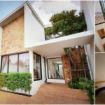 การตกแต่งอื่น ๆ นั้น บริเวณหน้าบ้านถูกติดตั้งด้วยผนังกระจกใสขนาดใหญ่ที่ช่วยให้ความสว่างและโปร่งสบายสุด ๆ ภายนอกเลือกใช้สีขาวครีมยืนพื้น แซมด้วยสีน้ำเงินและผนังอิฐโชว์แนว