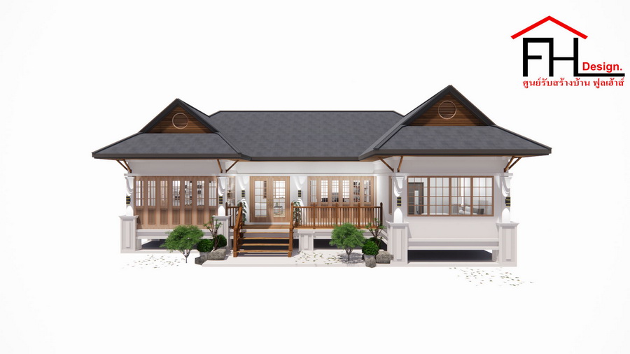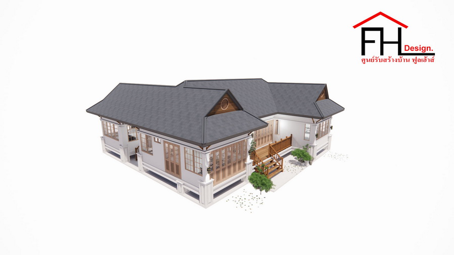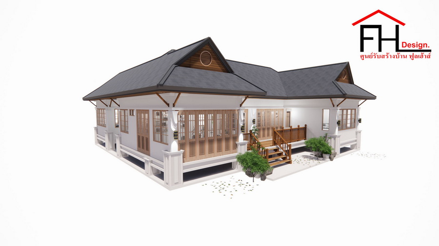 แบบบ้านทรงไทยประยุกต์ ผลงานการออกแบบโดย ศูนย์รับออกแบบบ้าน FULL HOUSE Design บ้านที่มีพื้นฐานโครงสร้างจากบ้านแนวโมเดิร์น ผสานไปกับการออกแบบและตกแต่งในแบบบ้านทรงไทย จนได้บ้านที่แข้งแรงทันสมัยที่มาพร้อมกับความสวยงามกลิ่นอายดั้งเดิม