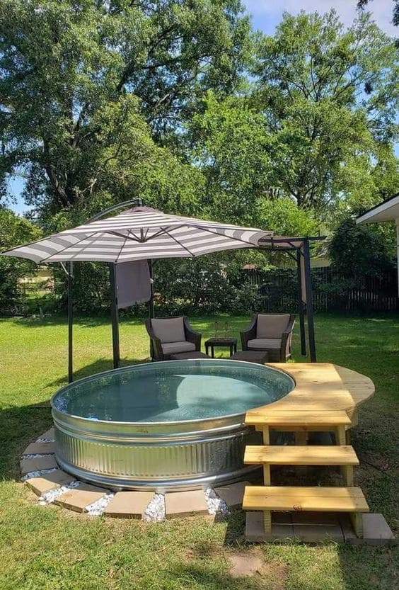 อากาศเมืองไทยที่ร้อนเกือบตลอดทั้งปี การหลายร้อนด้วยการตากแอร์ หรือพัดลมอยู่ในบ้านทั้งวันก็คงจะเปลืองค่าไฟไม่ใช่เล่น ดังนั้น การออกมาพักผ่อนบริเวณสวนหลังบ้านจึงเป็นทางเลือกที่ดี ซึ่งถ้ายิ่งมีพื้นที่ให้แช่ตัวก็น่าจะช่วยให้เย็นสบายเพิ่มขึ้นได้ไม่น้อยเลย