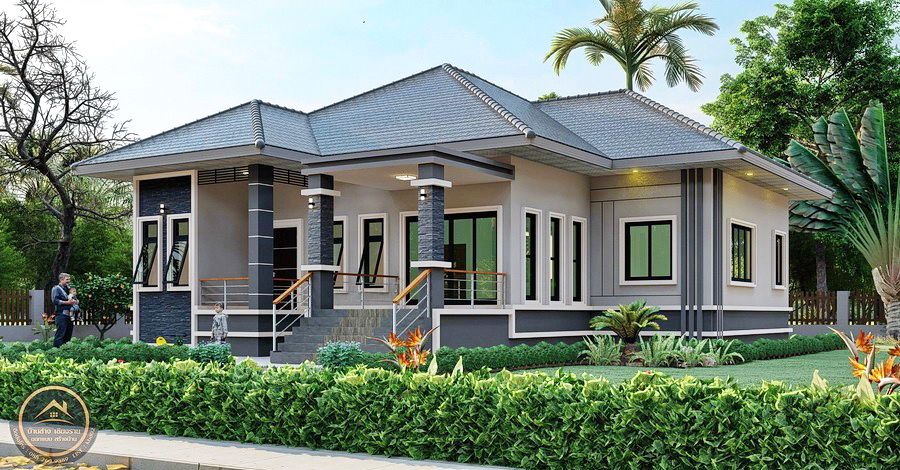 โดยบ้านหลังนี้เป็นบ้านชั้นเดียวที่ถูกออกแบบยกพื้นขึ้นสูง จึงช่วยป้องกันปัญหาน้ำท่วมขังได้ดี ตัวบ้านมีพื้นฐานการออกแบบจากบ้านทรงร่วมสมัย มีหลังคาทรงปั้นหยาที่มุงด้วยกระเบื้องแบบเรียบในโทนสีเทา ผนังของบ้านตกแต่งด้วยสีครีมยืนพื้น สลับกับสีเทาที่มีโทนใกล้เคียงกัน