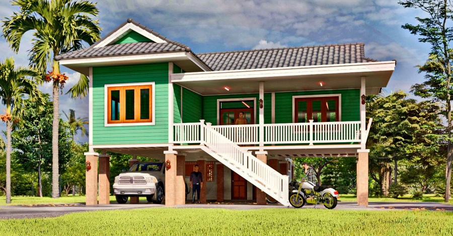 หากเพื่อนๆ ชอบบ้านที่มีใต้ถุนล่ะก็ ลองมาชม แบบบ้านเกษตรวุ้งกระสัง หลังนี้กันดูครับ เป็นบ้านยกพื้นสูงใต้ถุนโล่งที่ก่อสร้างด้วยโครงสร้างเหล็กและกรุผนังไม้เทียม ร่นระยะเวลาการก่อสร้างกว่าบ้านไม้แบบเดิมๆ ได้เป็นอย่างมาก ผลงานกาารออกแบบโดย Thaidrawing ตามมาชมรายละเอียดกันเลยครับ
