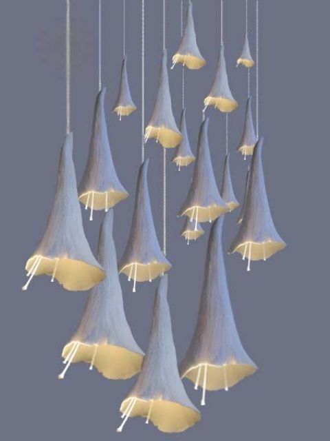 8. โคมไฟระย้าที่ออกแบบเป้นรูปดอกไม้คว่ำ ซึ่งมีดีไซน์ที่แปลกตาแต่สวยงามสุดๆ เหมาะกับบ้านในสไตล์โมเดิร์น