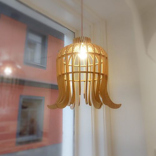 12. อีกหนึ่งการออกแบบโคมไฟจากไม้อัดที่ถูกประกอบเป้นรูปทรงดอกไม้คว่ำแบบง่ายๆ