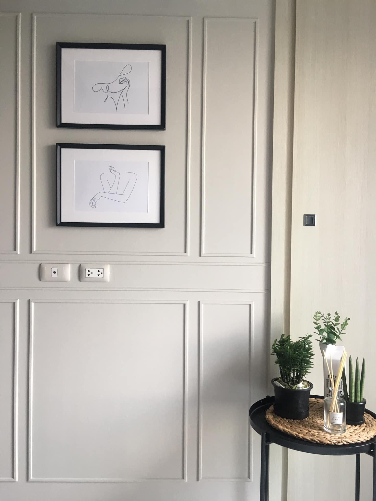 เจ้าตัวจึงตัดสินใจทำเอง เลือกใช้วัสดุง่าย ๆ ทำออกมาสวยมาก จนเพื่อน ๆ สงสัยว่าทำได้อย่างไร ผนังแบบนี้ งบแค่ 150 บาท