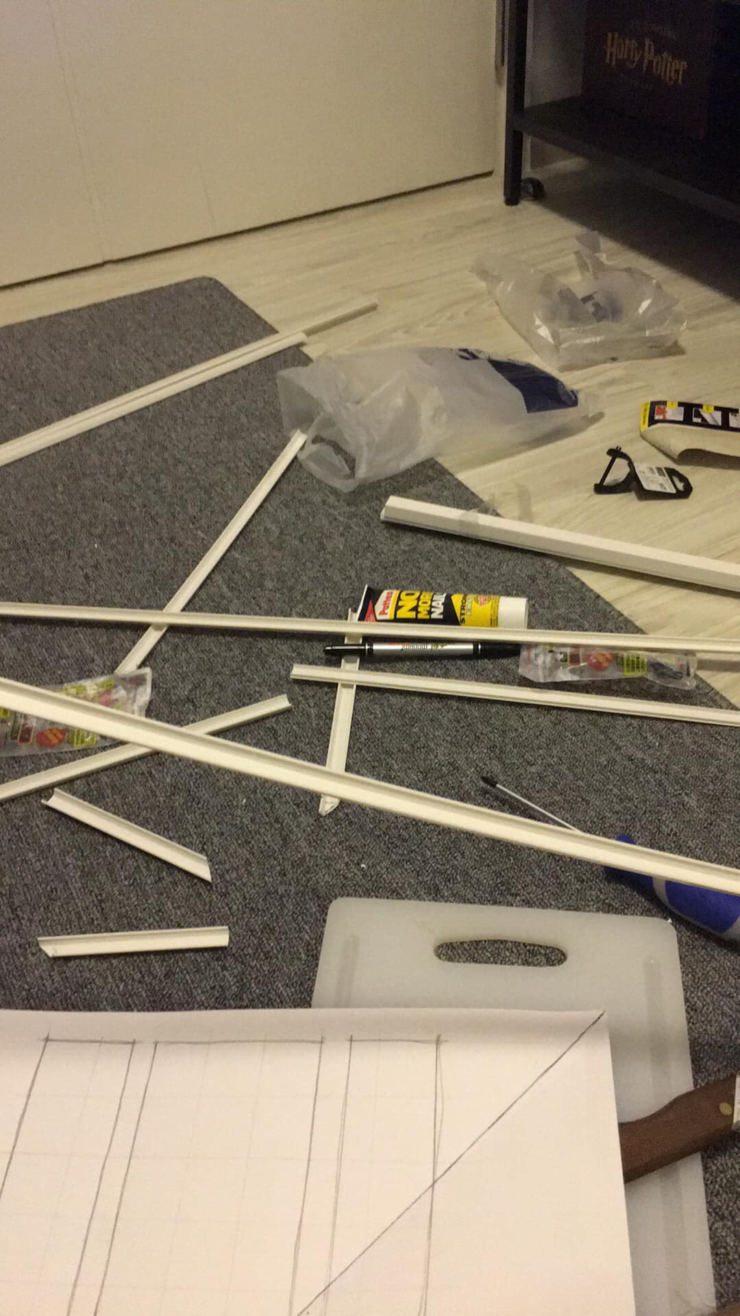 ส่วนที่หนุ่มรายนี้อย่างจะคือ คือ คิ้วบัวผนัง ซึ่งมีราคาแพง จึงทำการหาวัสดุทดแทน ใช้ท่อสายไฟเส้นละ 4 บาท