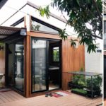 การตกแต่งภายนอกจะใช้ระแนงสีเข้มและประดับด้วยอิฐสีส้มอ่อนบริเวณโคนเสาช่วยเพิ่มลวดลายและความหรูหราให้กับตัวบ้าน