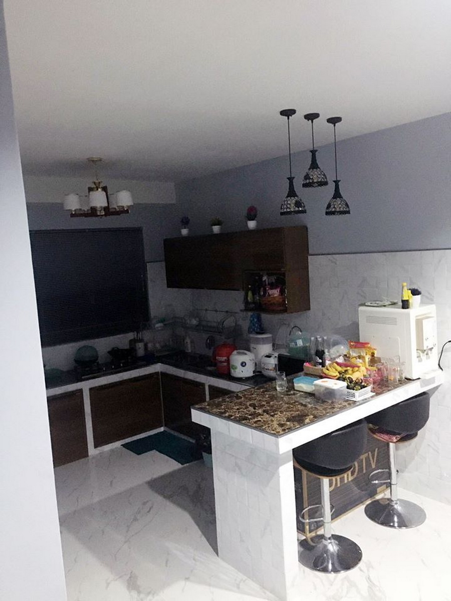 ทางด้านห้องครัวเป้นห้องที่มีขนาดพอเหมาะ ภายในตกแต่งด้วยเคาน์เตอร์ครัวแบบติดผนัง รวมไปถึงเคาน์เตอร์บาร์ จึงสามารถใช้นั่งทานอาหารในห้องครัวได้อย่างสะดวก