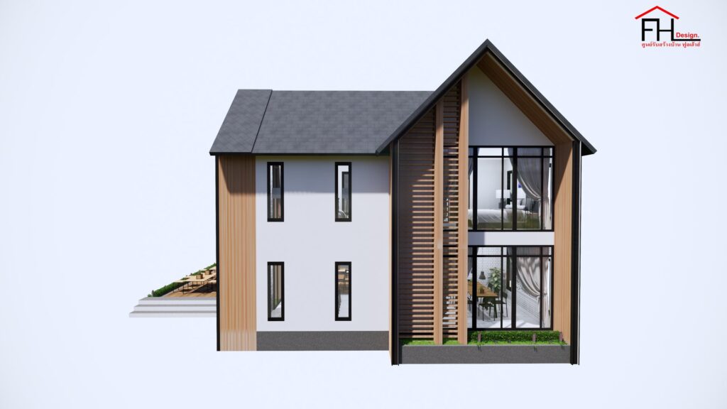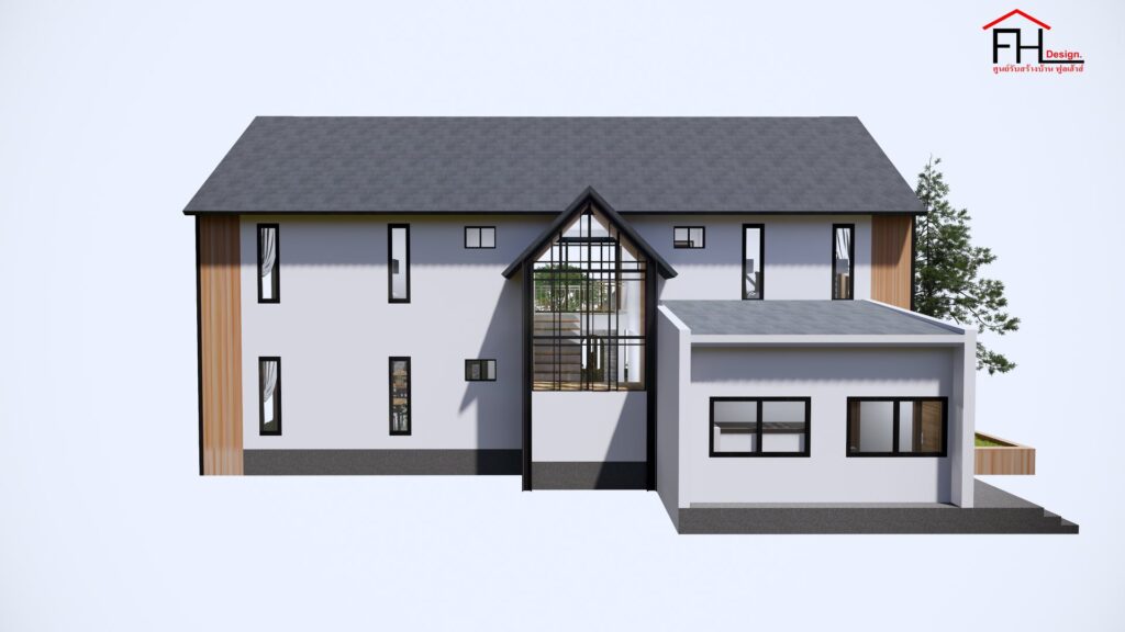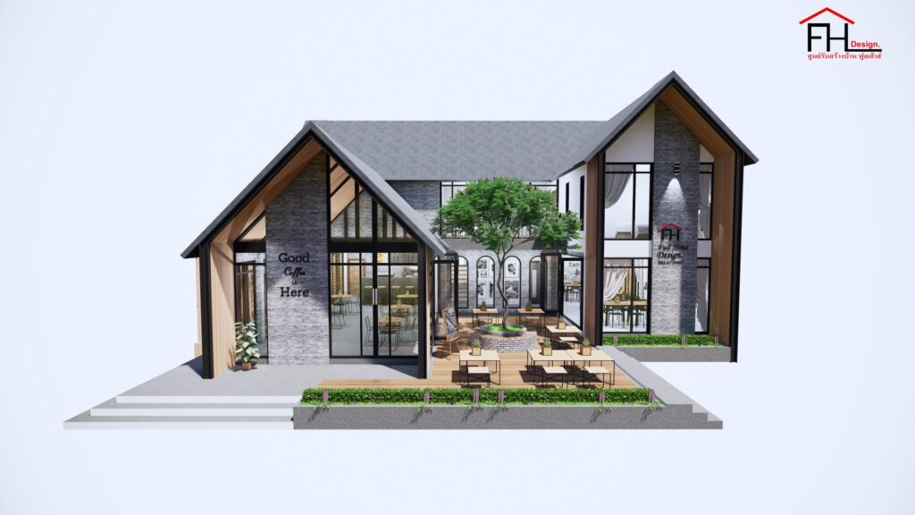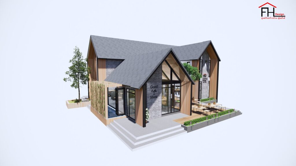 แบบบ้านพร้อมคาเฟ่สไตล์นอร์ดิก ผลงานการออกแบบโดยทีมงานจาก ศูนย์รับสร้างบ้าน FULL HOUSE Design ดีไซน์รูปทรงโดดเด่น ด้วยพื้นฐานการออกแบบที่ได้รับแรงบันดาลใจมาจากบ้านแถบยุโรป ผสมผสานระหว่างความทันสมัยและความดั้งเดิมได้อย่างลงตัว พร้อมด้วยพื้นที่ใช้สอยครบครันทั้งอยู่อาศัยและเป็นร้านคาเฟ่ในตัว