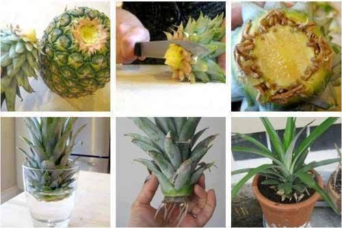 กินสับปะรดเสร็จแล้ว ให้ตัดส่วนใบของมันออก แล้วเอาไม้จิ้มฟันเสียบไปที