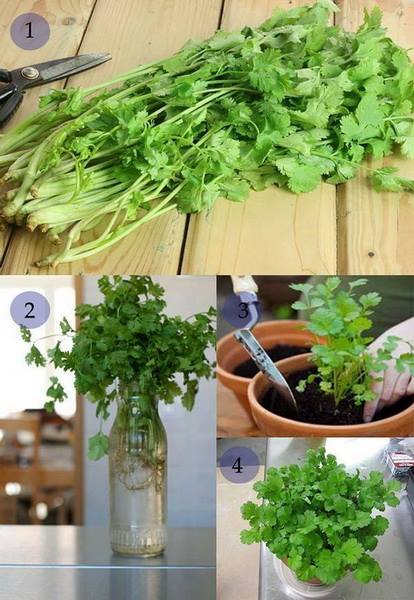 นำผักชีฝรั่งที่ซื้อมาตัดจา