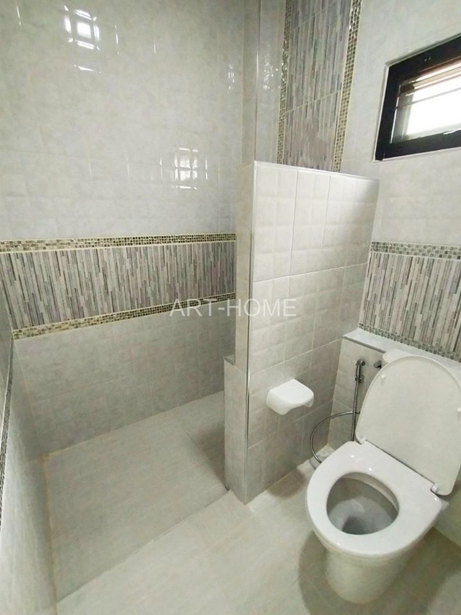 สำหรับห้องน้ำ เป็นห้องที่มีขนาดพอเหมาะ ภายในตกแต่งในโทนสีสบายตา ทั้งยังกั้นพื้นที่ใช้งานแบบแห้งและแบบเปียกไว้อย่างเป็นสัดส่วนให้ใช้งานง่าย