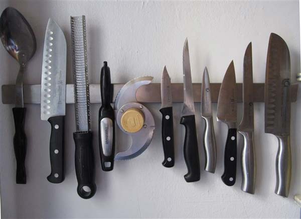 เอาแม่เหล็กแรงสูงมาติดผนัง ทำเป็นที่เก็บมีดได้เลย