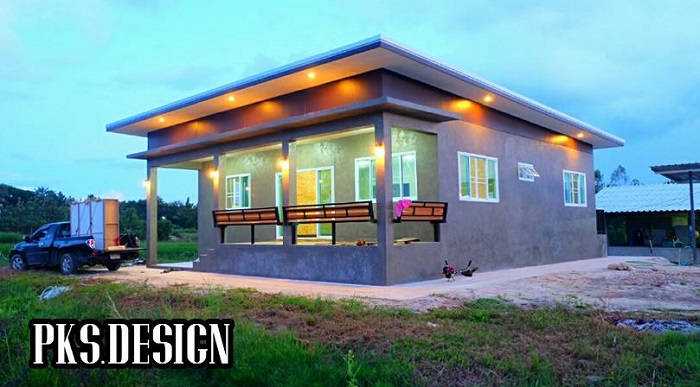 บ้านชั้นเดียวสไตล์โมเดิร์นลอฟท์ มีพื้นที่ใช้สอยโดยรวมอยู่ที่ 120 ตารางเมตร แบ่งออกเป็น 3 ห้องนอน 2 ห้องน้ำ 1 ห้องโถง 1 ห้องครัว 1 และห้องรับแขก ใช้งบประมาณในการก่อสร้างทั้งหมด 1,200,000 บาท (ไม่รวมเฟอร์นิเจอร์)
