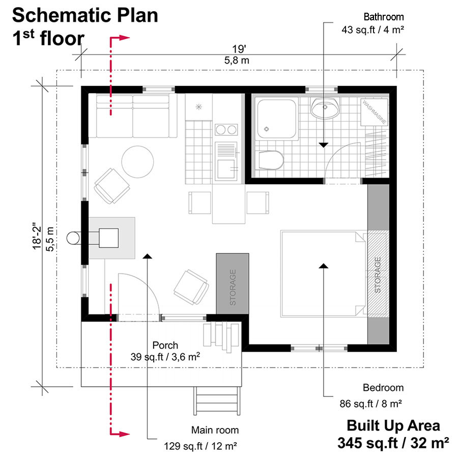โดยรวมแล้วบ้านบังกะโลหลังนี้มีขนาด 1 ห้องนอน 1 ห้องน้ำ พร้อมห้องนั่งเล่นและห้องครัว บนพื้นที่ใช้สอยเพียง 32 ตารางเมตร เหมาะสำหรับการใช้เวลาพักผ่อนในช่วงวันหยุด เพื่อนๆ คนไหนที่กำลังมองหาแบบบ้านพักตากอากาศหลังเล็กๆ ฟังก์ชันครบครันก็สามารถเก็บไว้เป็นไอเดียกันได้เลยค่ะ