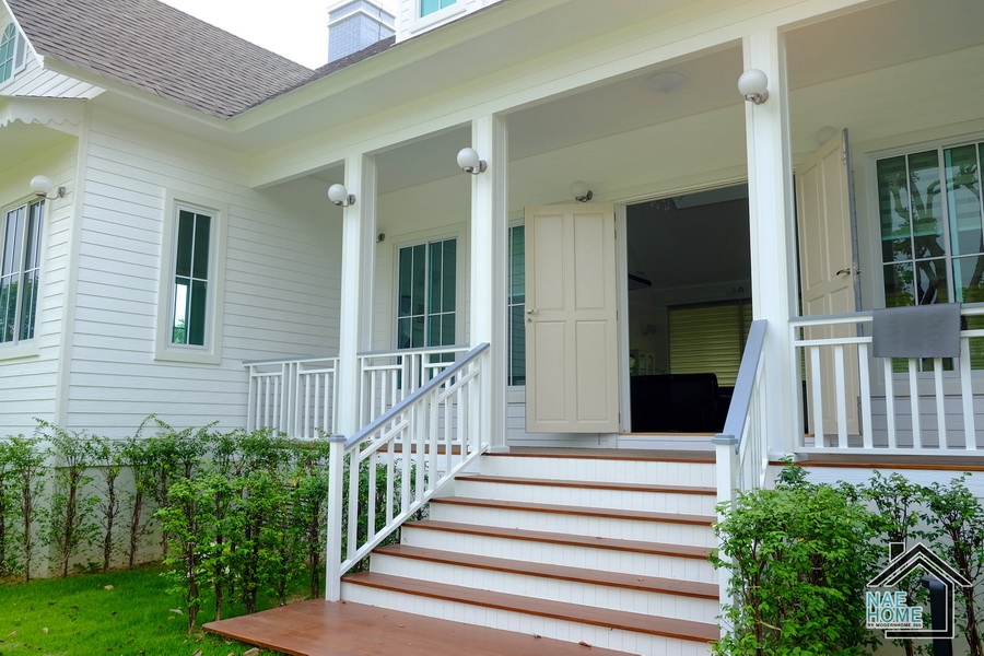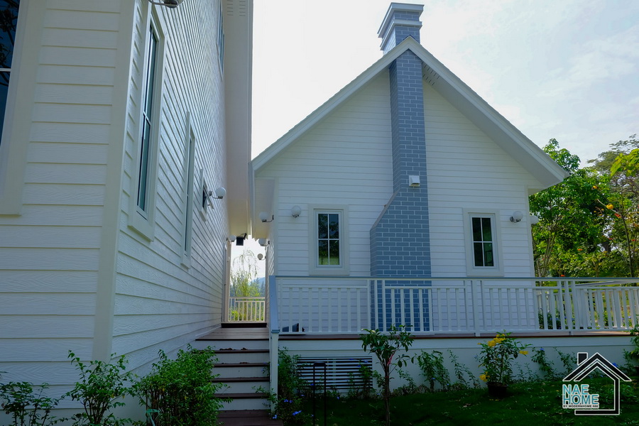 บ้านหลัวนี้เป็นบ้านชั้นเดียวที่ตัวบ้านมีขนาดที่ใหญ่เป็นพิเศษ การออกแบบนั้นเป็นการออกแบบในสไตล์อิงลิชคันทรี จึงมีองค์ประกอบที่สวยงามแปลกตา ไม่ว่าจะเป็นหลังคาหลังคาทรงหน้าจั่วแบบมีหน้าต่างขนาดเล็ก ปล่องควัน รวมไปถึงโทนสีอ่อนแบบพาสเทล