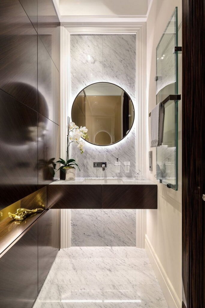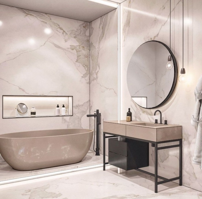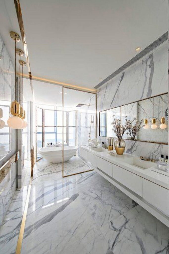 ห้องน้ำสไตล์ลักชัวรี่นั้นคือห้องน้ำที่เน้นกลิ่นอายของความหรูหราเป็นหลัก มักจะเน้นเส้นสายเรขาคณิตที่เรียบง่าย แต่จัดวางอย่างลงตัวพอดี การใช้งานก็สามารถทำได้อย่างสะดวกสบาย ในบรรยากาศที่ผ่อนคลายและเป็นส่วนตัวสุด ๆ