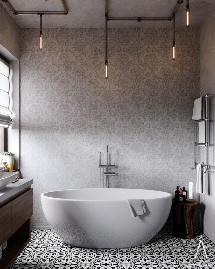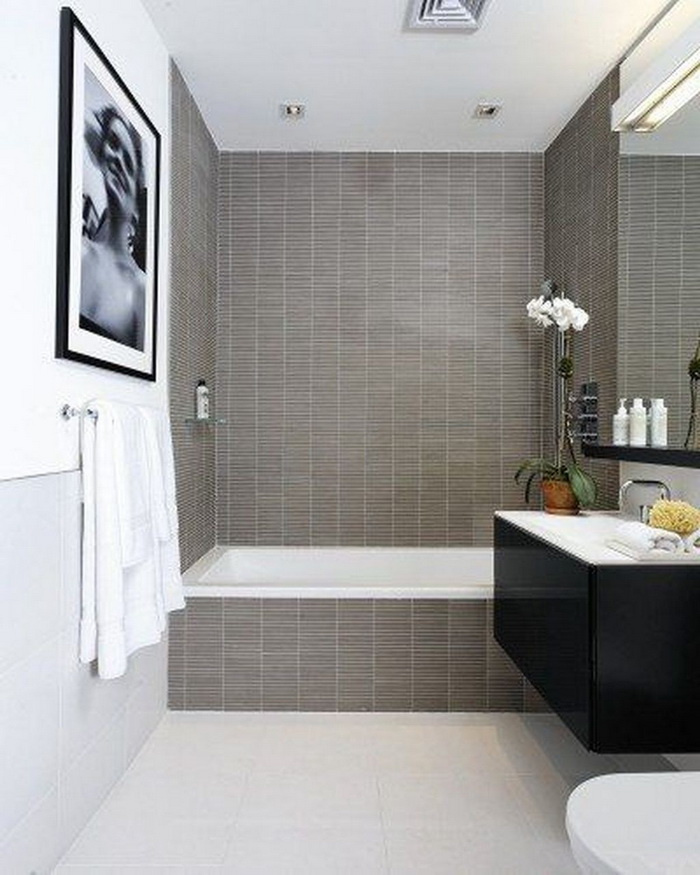 ในส่วนของการเลือกใช้โทนสี ส่วนใหญ่แล้วมักจะเน้นไปที่โทนสีขาว และอาจมีการตกแต่งด้วยวอลเปเปอร์โทนสีเทา ดำ หรือ น้ำตาลเข้ม รวมไปถึงโทนสีทองหรือโทนสีพวกเมทัลลิค เพื่อเพิ่มมิติให้ภายในห้องน้ำ