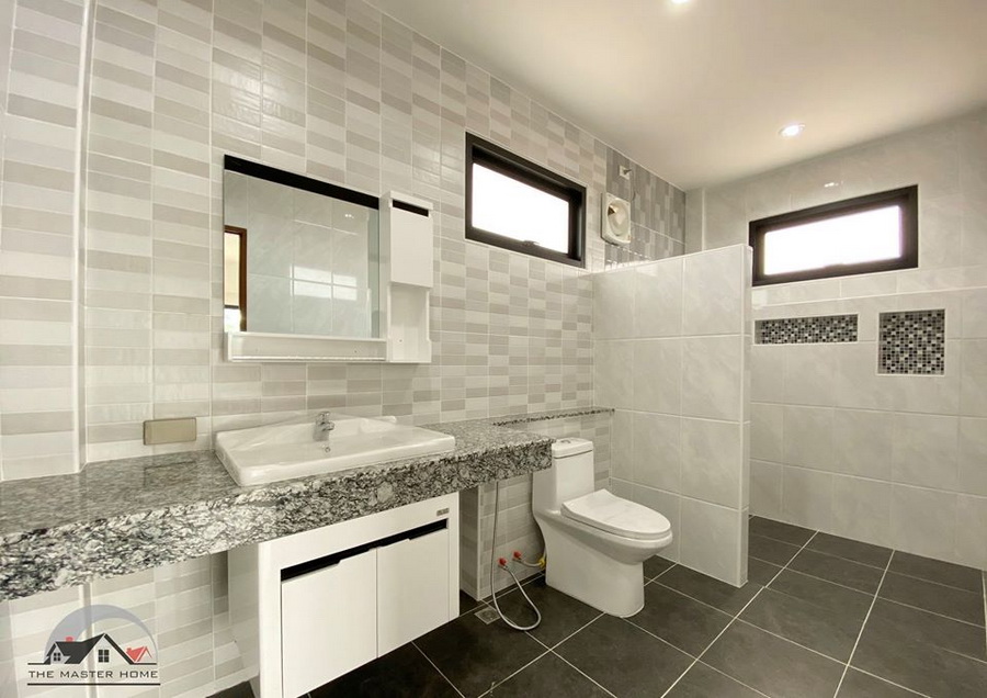 ในส่วนของห้องน้ำ เป็นห้องที่ออกแบบให้มีพื้นที่ค่อนข้างกว้าง ภายในจึงสามารถใช้งานได้อย่างสะดวกสบาย และแบ่งพื้นที่การใช้งานได้อย่างเป็นสัดส่วน