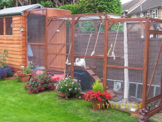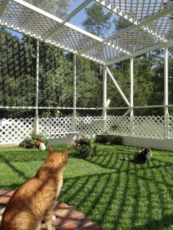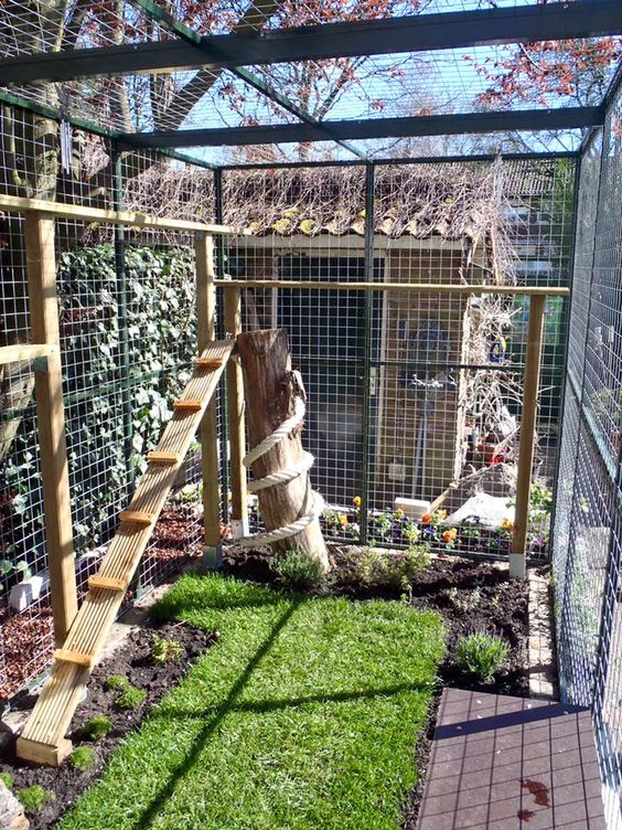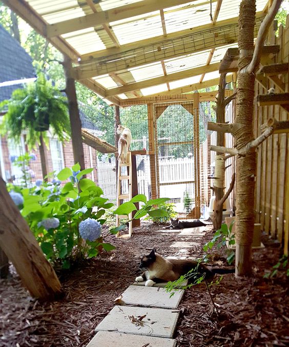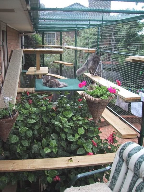 การเพิ่มพื้นที่สีเขียวเป็นแนวทางการตกแต่งกรงที่จะช่วยให้เจ้าแมวได้เพลิดเพลินไปกับพื้นที่สีเขียวเหล่านี้ หรืออาจจะแซมด้วยดอกไม้สวยๆ ก็ช่วยเพิ่มบรรยากาศได้ดีเลยทีเดียว ลองมาชมตัวอย่างไอเดียกันเลย