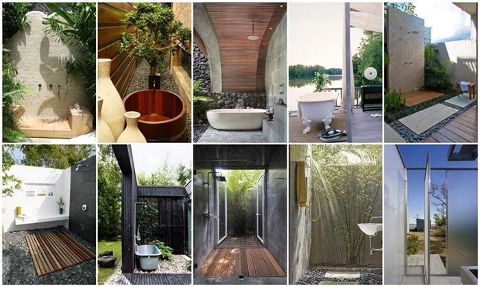 รวบรวมเอาไอเดียพื้นที่อาบน้ำกลางแจ้ง ในสไตล์ทรอปิคอล ตกแต่งเรียบง่ายด้วยสวนเขตร้อน อัดแน่นให้ร่มรื่น ผสมวัสดุที่คุ้นตาจากธรรมชาติ เช่นไม้ อิฐ หิน ตามงานพื้นและผนัง เลือกสร้างไว้ตามมุมบ้าน ริมผนังบ้าน การสร้างพื้นที่อาบน้ำกลางแจ้งประเภทนี้ เหมาะสำหรับบ้านสวน บ้านตากอากาศมากกว่าบ้านในเมือง แนะนำให้ตกแต่งด้วยต้นไม้ รวมทั้งกำแพง เพื่อการปกปิดในบางส่วน เพื่อความเป็นส่วนตัวด้วยครับ