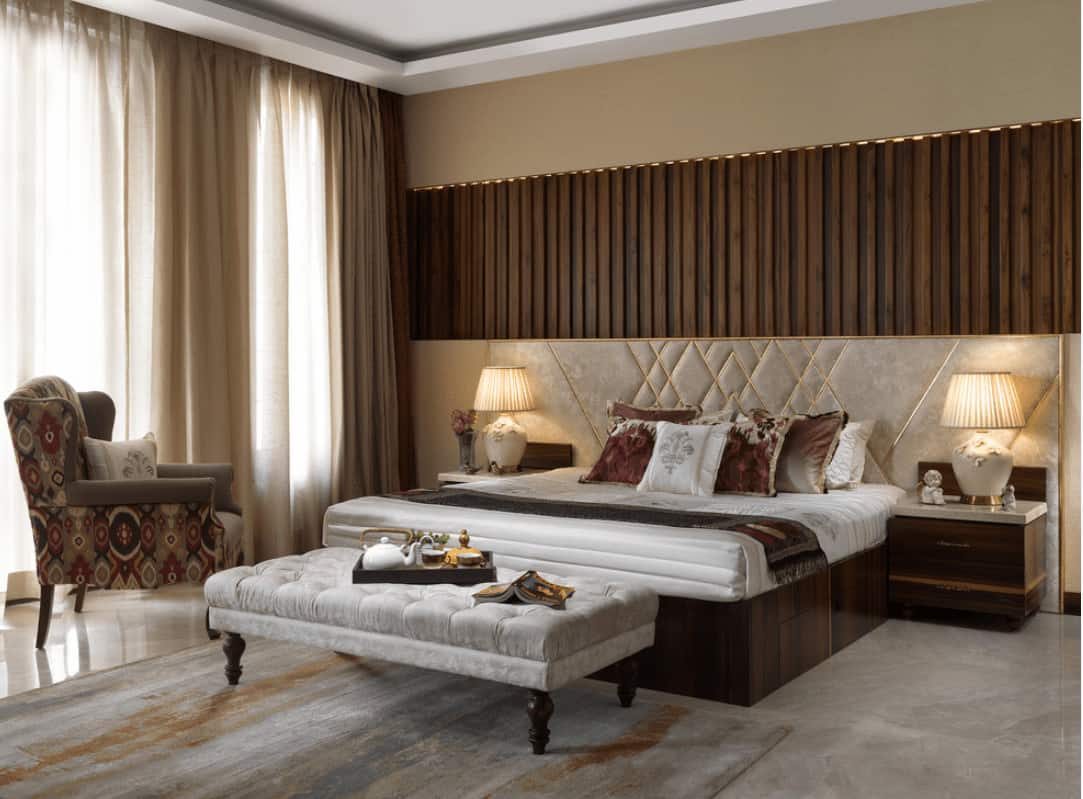 สีน้ำตาลเป็นโทนสีสุดคลาสสิก มักได้จากธรรมชาติอย่างวัสดุจากไม้ โดยสีน้ำตาลยังเป้นโทนสีที่ให้บรรยากาศที่อบอุ่น และผ่อนคลายสุดๆ จึงเหมาะกับการนำมาใช้ตกแต่งมุมพักผ่อนอย่างห้องนอน