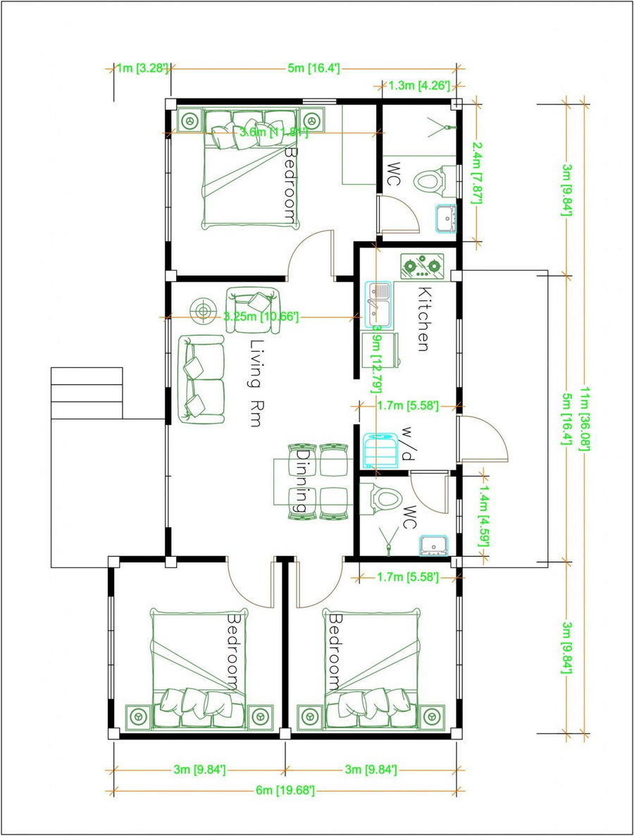 โดยรวมแล้ว บ้านหลังนี้ประกอบไปด้วย 3 ห้องนอน 2 ห้องน้ำ พร้อมโซนนั่งเล่น ห้องครัว พร้อมโซนซักล้างทางด้านหลัง พื้นที่ใช้สอย 66 ตร.ม. ฟังก์ชันครบครัน เพื่อนๆ คนในที่กำลังมองหาแบบบ้านสำหรับครอบครัวขนาดเล็กไปจนถึงขนาดกลาง ก็สามารถเก็บไว้เป็นไอเดียกันได้เลยค่ะ