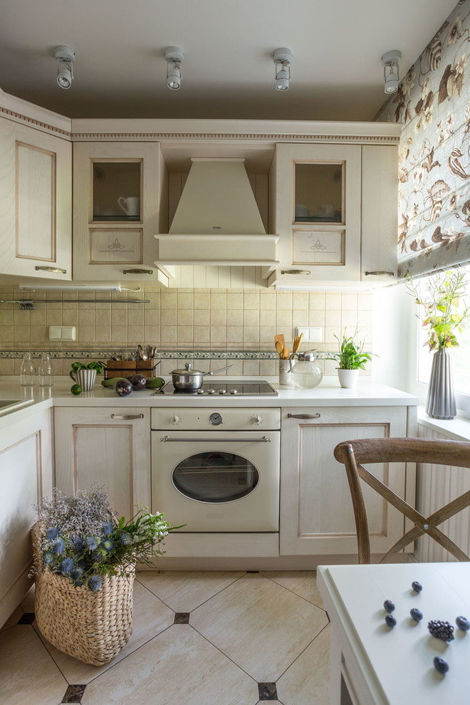 ห้องครัวในแนวทางการออกแบบสไตล์นี้จะเหมาะกับห้องที่มีขนาดเล็กและมีเพดานต่ำ ซึ่งความโดดเด่นของโปรวองซ์ จะเป็นการตกแต่งผนังด้วยวอลล์เปเปอร์ในลวดลายดอกไม้ต่าง ๆ