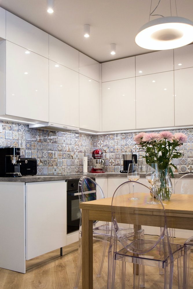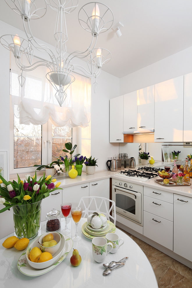 การตกแต่งห้องครัวในสไตล์นี้จะเน้นการใช้สีขาวให้โดดเด่นสุด ๆ จึงทำให้ห้องครัวดูสว่างไสวและมีมิติสุด ๆ