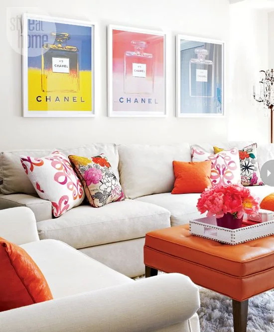 แนวทางต่อมาคือการเลือกใช้คู่สีคู่สีพื้นเรียบๆ กับสีที่ฉูดฉาด ก็จะทำให้ห้องนั่งเล่นดูมีรายละเอียดที่สวยงามคลาสสิคมากขึ้น