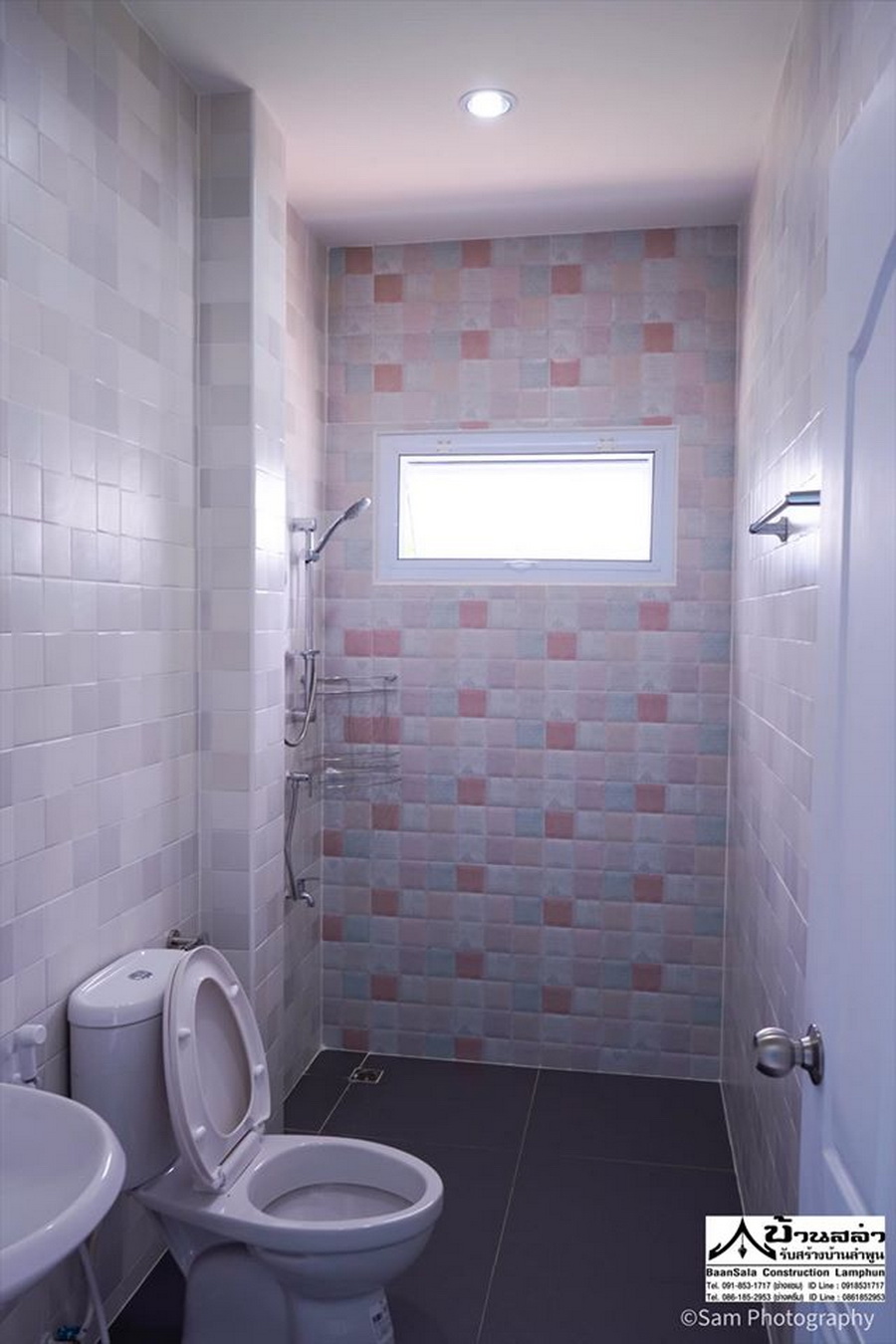 ทางด้านของห้องน้ำนั้น ภายในมีพื้นที่ใช้สอยในขนาดพอเหมาะ ภายในตกแต่งด้วยบรรยากาศโทนสีอ่อน ให้บรรยากาศที่ผ่อนคลายให้กับทุกครั้งที่ใช้งาน