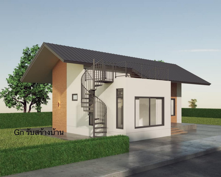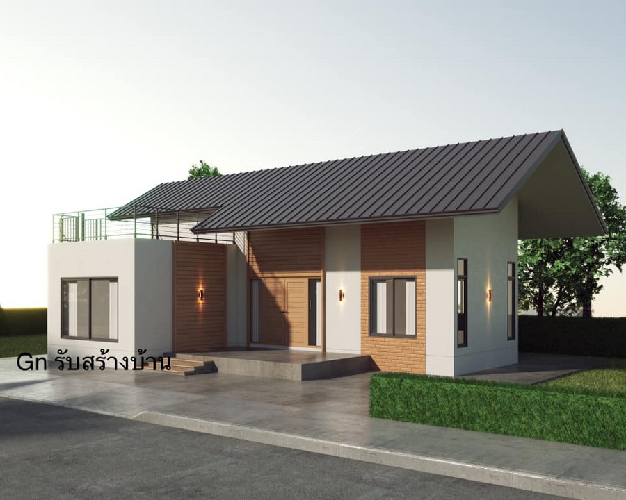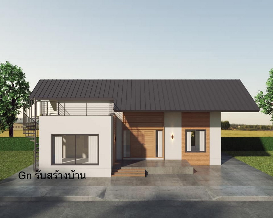 แบบบ้านสไตล์มินิมอล ผลงานการออกแบบโดยคุณ นายกอล์ฟ ฟี่ จาก GN House ผลงานแบบบ้านที่มีความเรียบง่าย เน้นพื้นที่ใช้สอยทั้งภายในและภายนอกบ้าน โดยมีพื้นที่ดาดฟ้าขนาดเล็กเพื่อการพักผ่อนเป็นเอกลักษณ์ที่โดดเด่นของการออกแบบบ้านหลังนี้