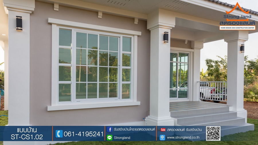 บ้านสไตล์คอนเทมโพรารี ผลงานการออกแบบและก่อสร้างโดย โคราช สตรองแลนด์ เป็นบ้านเดี่ยวขนาดกลางที่ออกแบบโครงสร้างหลักเรียบง่าย แต่มีรายละเอียดการตกแต่งที่สวยงาม จึงเป็นบ้านที่เหมาะสำหรับครอบครัวขนาดกลางที่กำลังมองหาบ้านหลังแรก