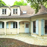 ลักษณะบ้านสองชั้นยกสูงเล็กน้อย ผนังใช้ไม้สีเข้มเรียงเป็นแนวสวย หลังคาทรงหน้าจั่วสีน้ำตาลเข้มเข้ากันได้เป็นอย่างดี มีห้องใต้หลังคา มองเห็นเด่นด้วยบานหน้าต่างด้านบนกรอบขาว ส่วนรอบบ้านตกแต่งรั้วด้วยไม้ดูโดดเด่น สะดุด ปลูกต้นไม้สีเขียวแซม ให้บ้านดูเข้ากับธรรมชาติ ได้อารมณ์ของการพักผ่อน