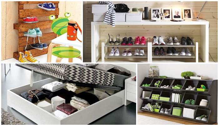 พื้นที่ว่างใต้เตียงนอน ก็สามารถทำที่เก็บรองเท้าได้ เป็นการใช้พื้นที่ในห้องให้เกิดประโยชน์ และคุ้มค่ามากที่สุดหรือจะนำไม้มาติดผนังทำเป็นชั้นวางรองเท้าดูเก่ไปอีกแบบ