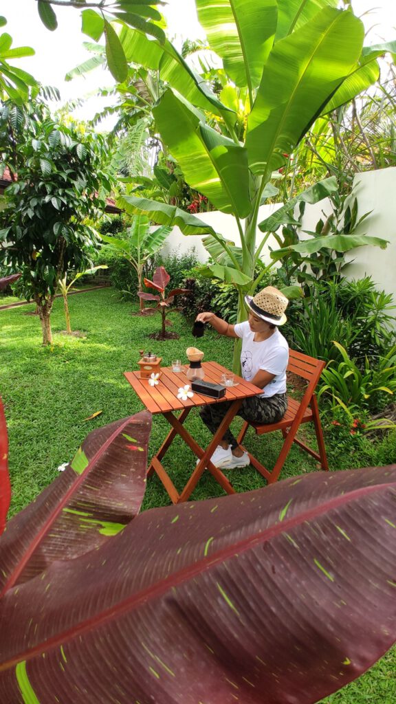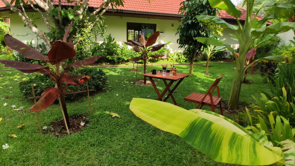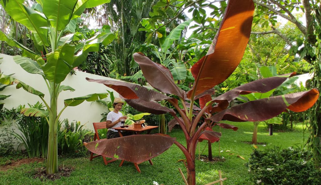 บรรยากาศการนั่งดื่มชมท่ามกลางสวนกล้วย ให้ความสวยสดชื่นไม่แพ้ต้นไม้อื่น ๆ เลยล่ะ