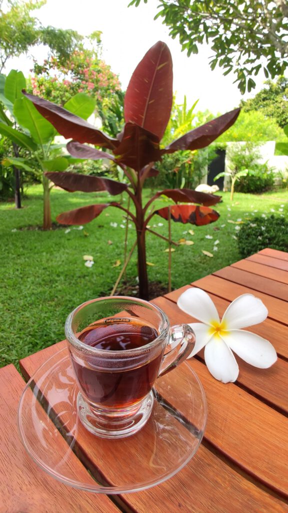 ต้นกล้วยสีม่วง ที่ทั้งหายากและมีราคาแพง ช่วยสร้างบรรยากาศให้การดื่มชาดูมีความละมุนละไมมากขึ้น