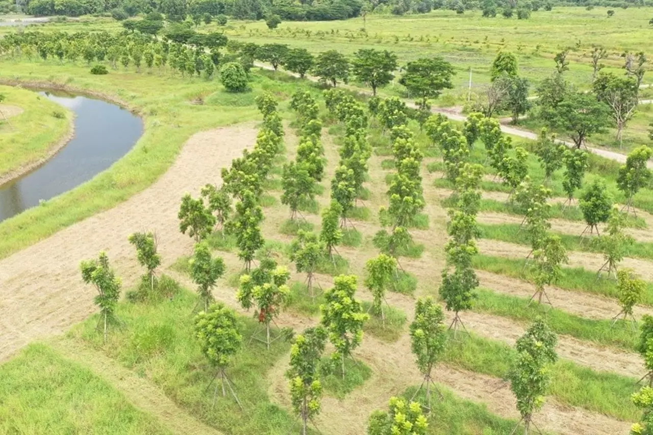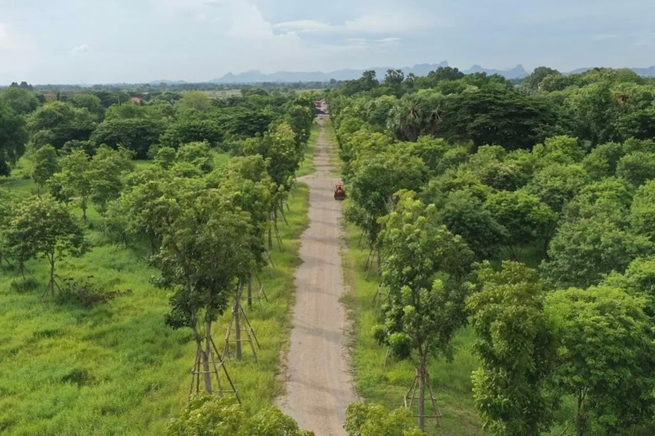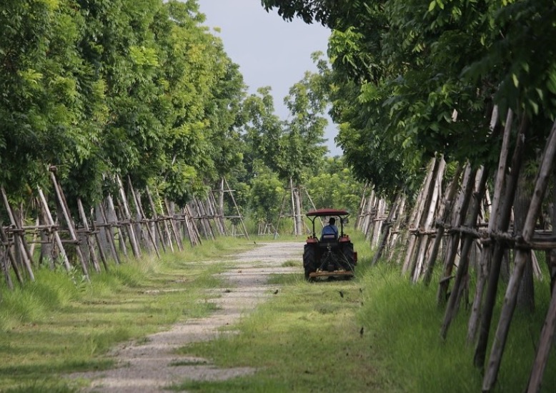 ต้นไม้แต่ละต้นถูกปลูกอย่างเป็นระเบียบ เพื่อให้สามารถดูแลได้ง่าย รวมไปถึงยังทำให้แต่ละต้นมีพื้นที่เพียงพอต่อการเติบโตอีกด้วย