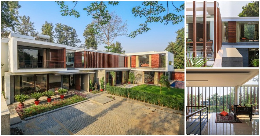 บ้านตากอากาศรูปทรงกล่อง ดีไซน์ตัวบ้านในแนวยาว เน้นความโปร่งโล่ง พร้อมสวนป่าร่มรื่น