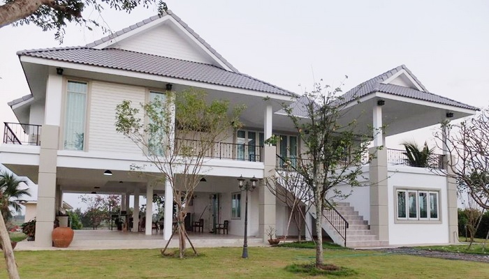 พบกันเป็นประจำกับ ในบ้าน ครั้งนี้เราก็มีแบบบ้านสวยๆ จาก บ้านป่าตาล มาฝากค่ะ แบบบ้านไทยร่วมสมัย โทนสีเทาอ่อน โดดเด่นด้วยรูปทรงไทยเดิมผสมผสานดีไซน์ทันสมัย พร้อมพื้นที่พักผ่อนบริเวณใต้ถุน เปิดกว้างรับลมเย็น โอบล้อมไปด้วยสนามหญ้าสดชื่น ให้บรรยากาศสบายๆ ร่มรื่น เราลองไปชมกันเลยดีกว่าค่ะ